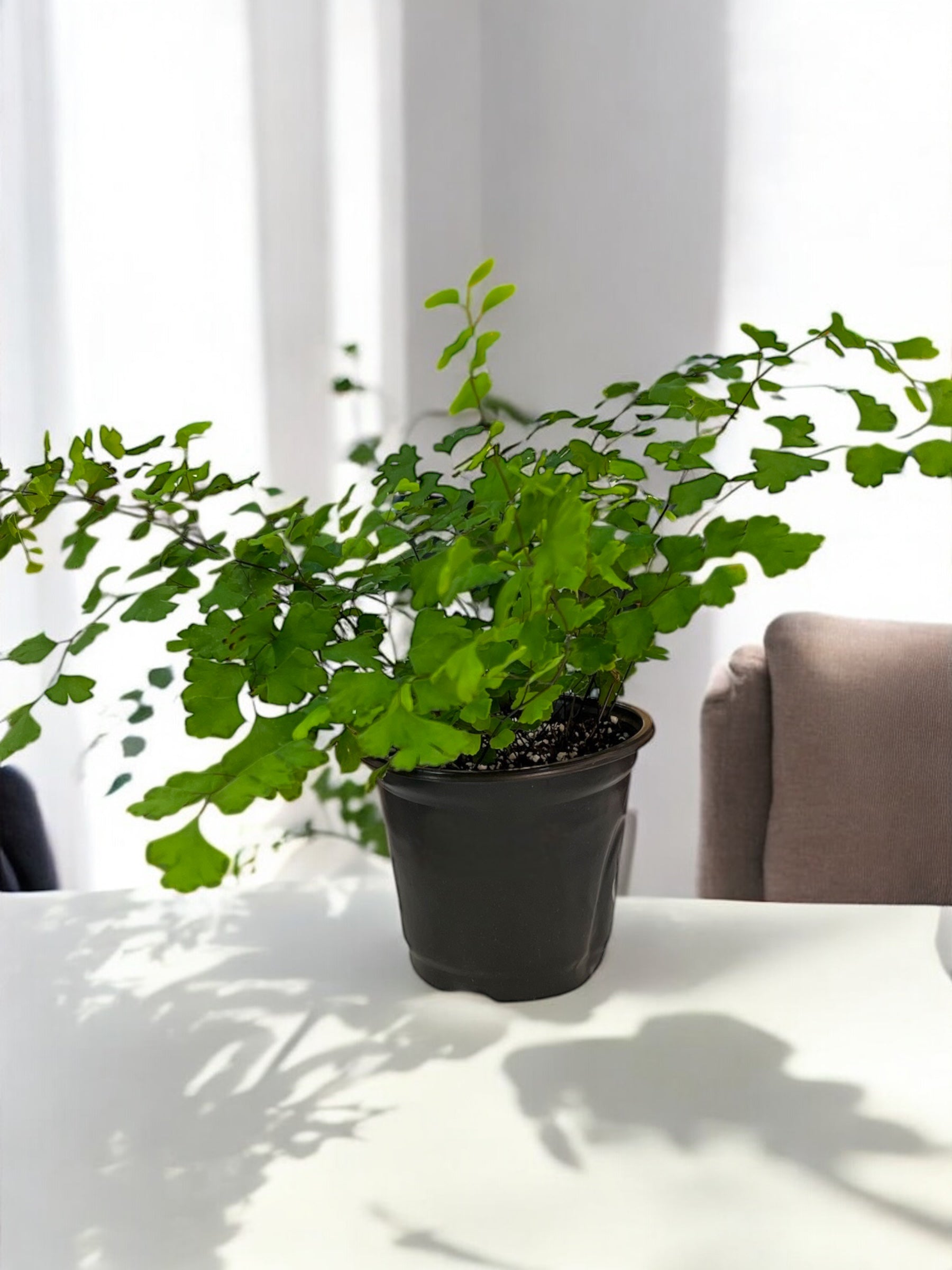 Los helechos normalmente son plantas algo difíciles por su alto requerimiento hídrico, pero este en particular es todo terreno. Ubícalo en un lugar de tu casa donde la luz no sea tan intensa y riega cuando veas la capa superior seca.