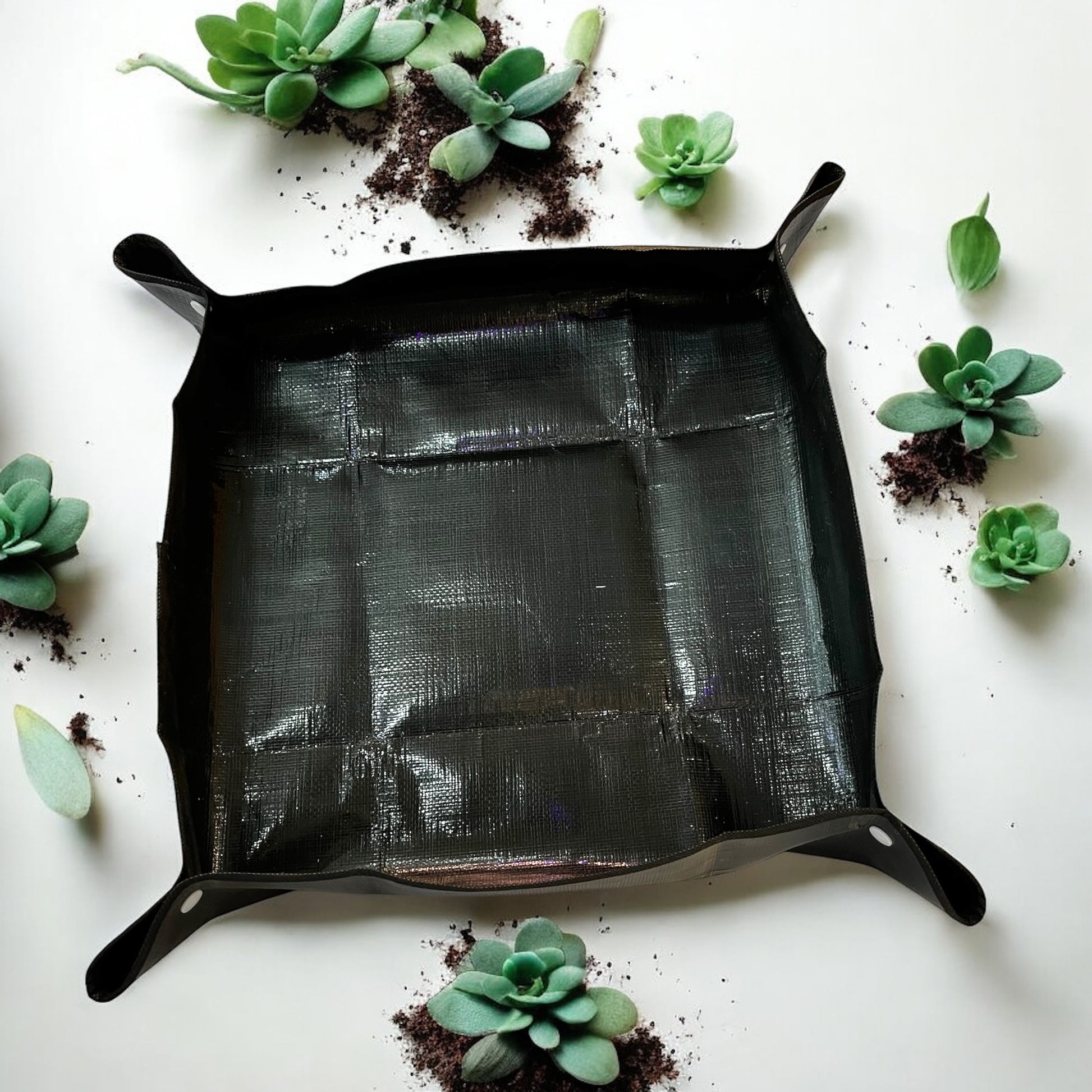 ¡No más ensuciar el living! Con este mat plástico, podrás realizar trasplantes de plantas pequeñas a medianas. Es de material impermeable, podrás usar, limpiar y guardar en menos tiempo, haciendo más eficaz la experiencia.