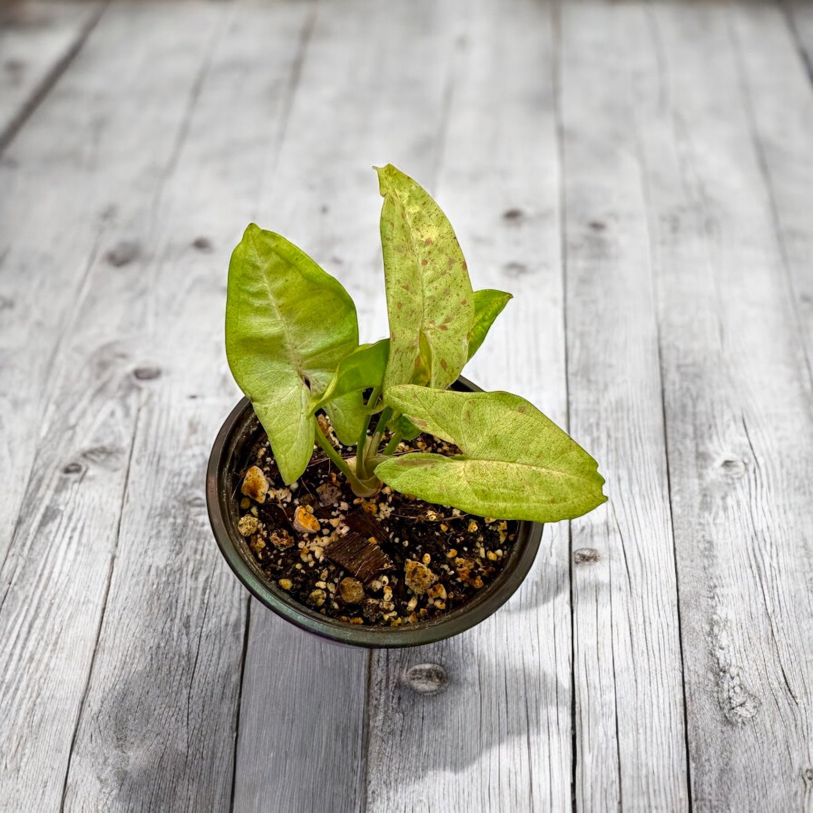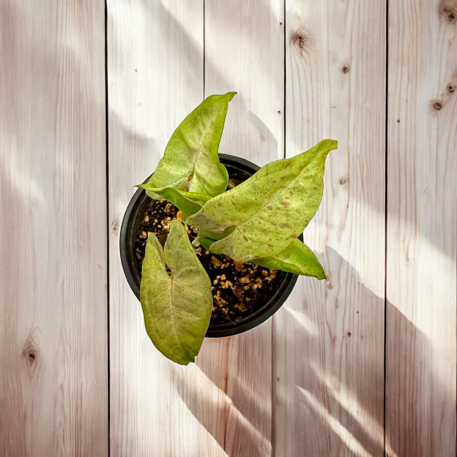 Singonio Confetti es una planta cautivante con sus manchas rosadas en todas sus hojas. Es sin duda, una hermosa planta para tu hogar, si buscas un regalo para tu novia, ¡esto es lo mejor! jaja.