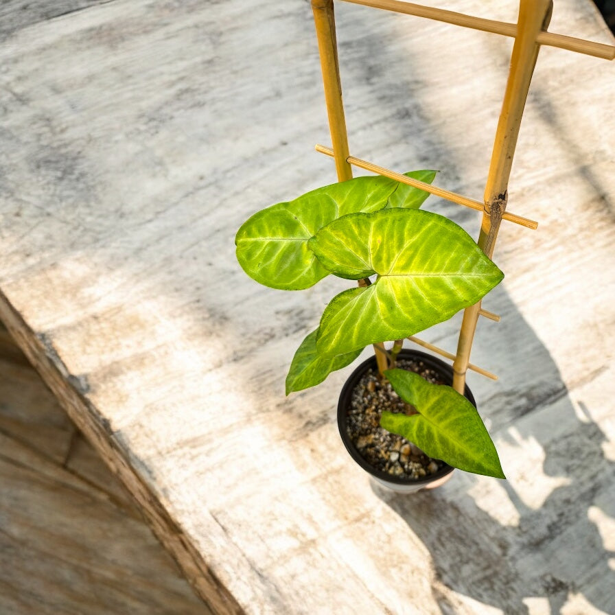 Los Singonios son plantas que no requieren una iluminación muy alta, les gusta que los rieguen solo cuando su sustrato esté seco y normalmente no son tan atacados por plagas. Puedes tenerlos en varios lugares de tu casa sin problemas.